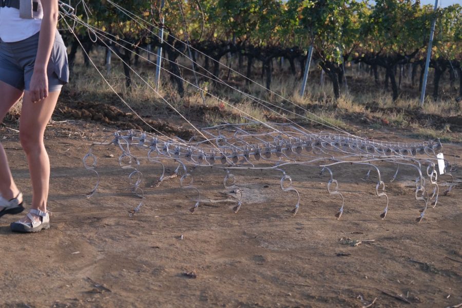 Just as aerating the soil is essential for cultivating ideal grapes—a factor that influences both production and the taste of wine—walking among the vines compacts the soil, hindering its ability to breathe. Based on this knowledge that she gathered from vineyard workers, the artist designed an object that tills the soil as one walks, to create a balancing force and turn harm into productivity. Functioning as an extension of the body, the design resembles a cyborg*. By synthesizing the current state of the agricultural revolution, mechanization, and standardized mass production methods with an ecological and cognitive framework, the artist offers an alternative proposition for the transition of creativity from muscle power to brainpower. Inspired by cultivators used in the vineyard, the artist considers walking with it attached to one’s back as an active gesture. When not in use by the artist, the design transforms into a contemporary object with an explanation resembling an IKEA instruction manual.